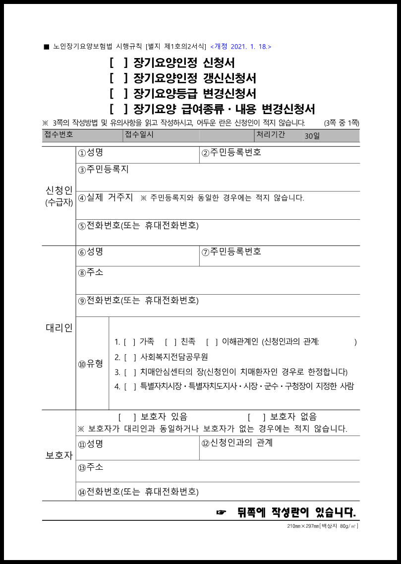 등급판정위원회는 신청인이 신청서를 제출한 날부터 30일 이내에 장기요양등급판정을 완료해야 합니다. 다만, 신청인에 대한 정밀조사가 필요한 경우 등 기간 이내에 등급판정을 완료할 수 없는 부득이한 사유가 있는 경우 30일 이내의 범위에서 이를 연장할 수 있습니다(「노인장기요양보험법」 제16조제1항).